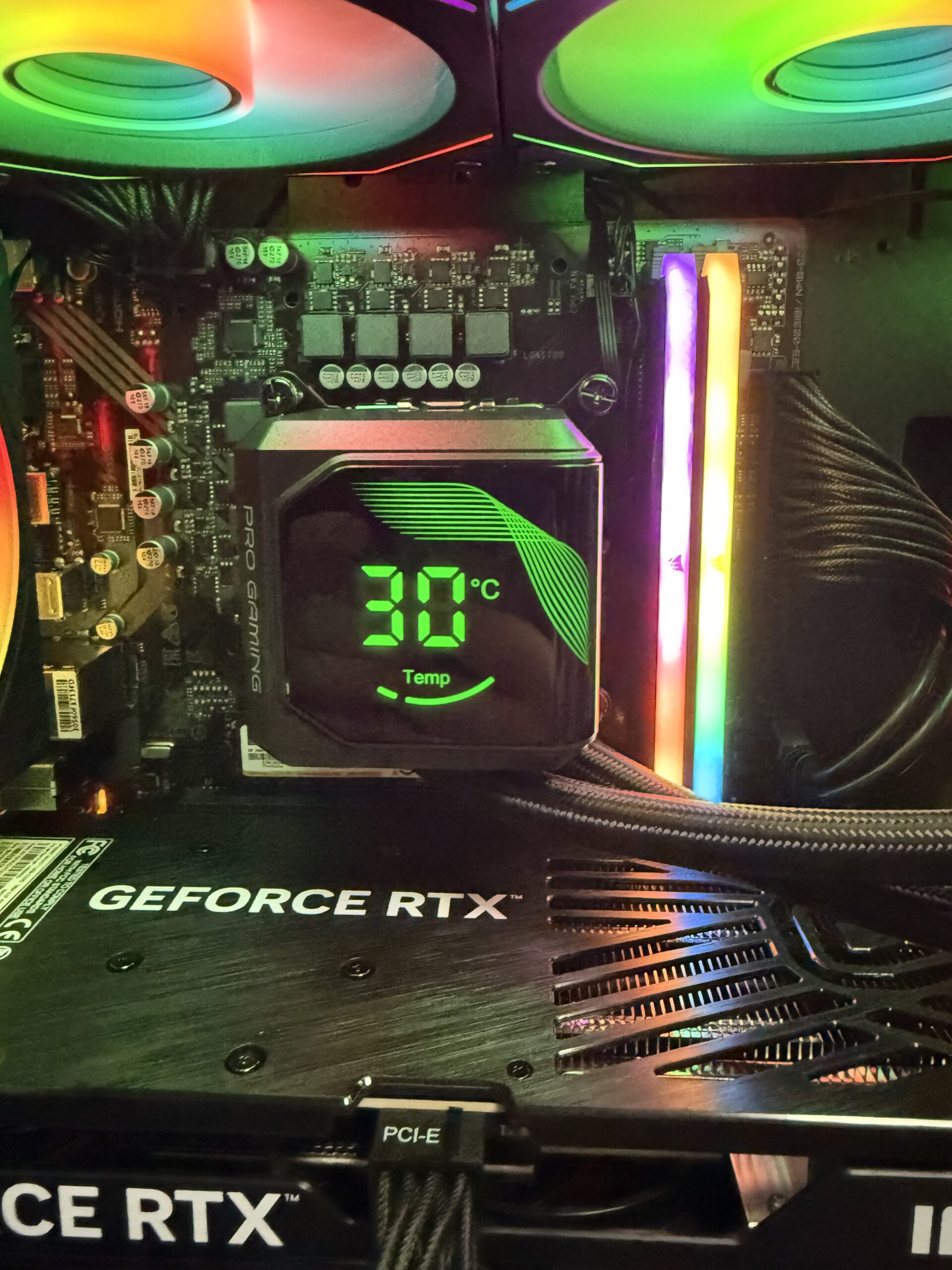• RAM:32GB DDR4 3600MHz Corsair Vengence RGB